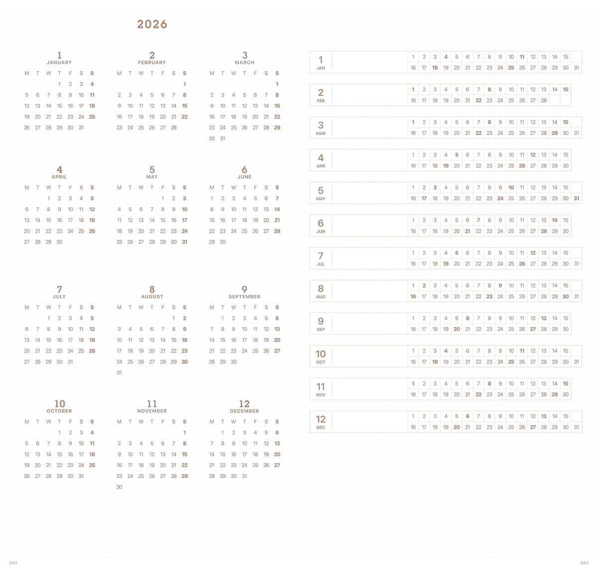 ● Yearly Calendar【Jan 2026 – Dec 2026】 (1P)