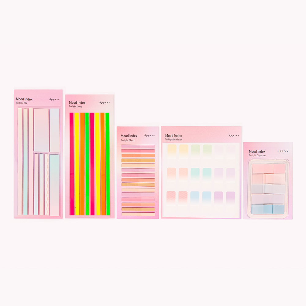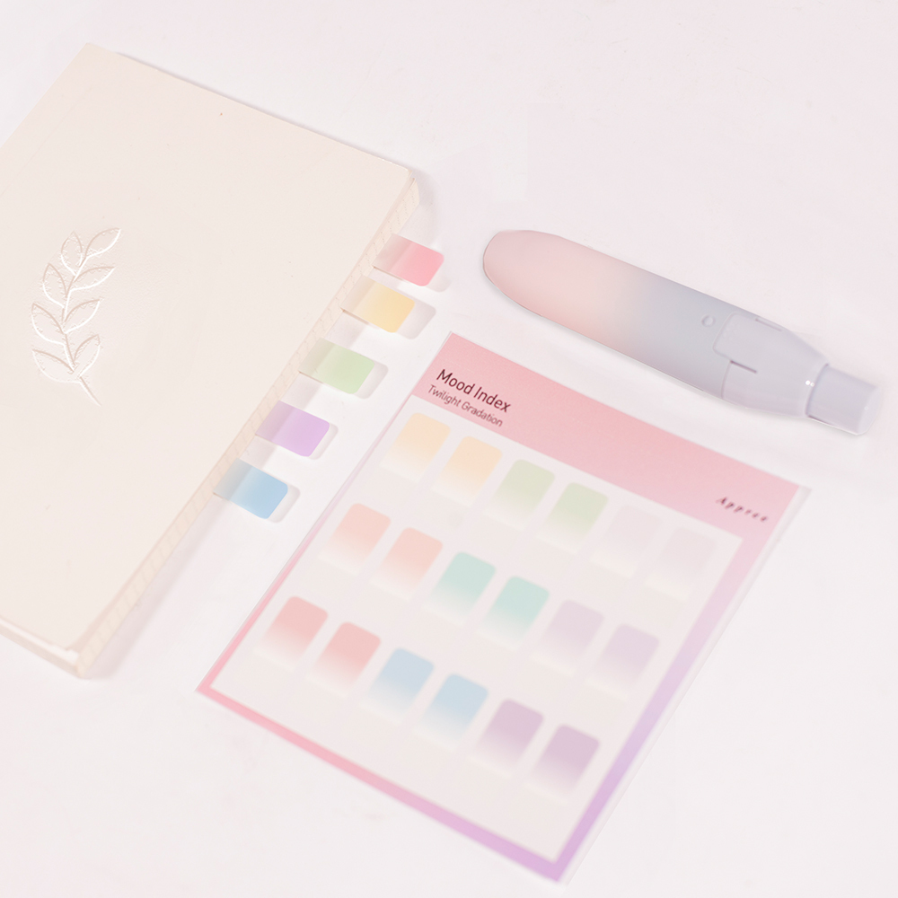 Appreen index labels are divided into two color series: daylight and dusk. Choose your favorite colors and shapes and create a personalized calendar.