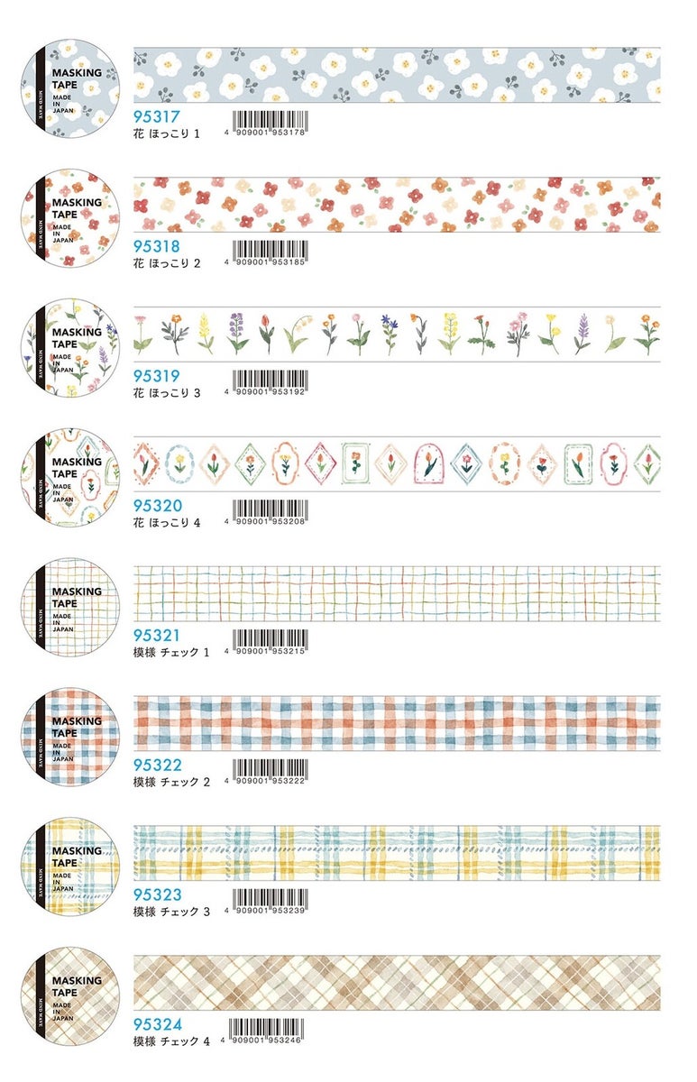 Add a soft and artistic touch to your journals, planners, scrapbooks, and craft projects with the Mind Wave Masking Tape series. This collection features delicate watercolor-style floral illustrations alongside cozy check patterns, combining simple designs with Mind Wave’s signature charming aesthetic.